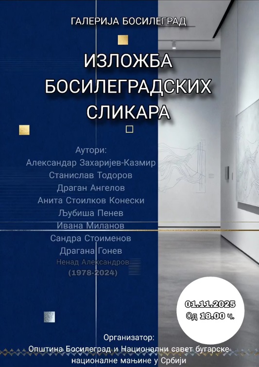 Поводом 1. новембра – Дана народних просветитеља, Национални савет бугарске националне мањине у Србији и Општина Босилеград, уз подршку Народне библиотеке „Христо Ботев“, Установе Центар културе „Босилеград“, Основне школе „Георги Димитров“ и Гимназије Босилеград, организују свечано обележавање и отварање уметничке изложбе босилеградских сликара.